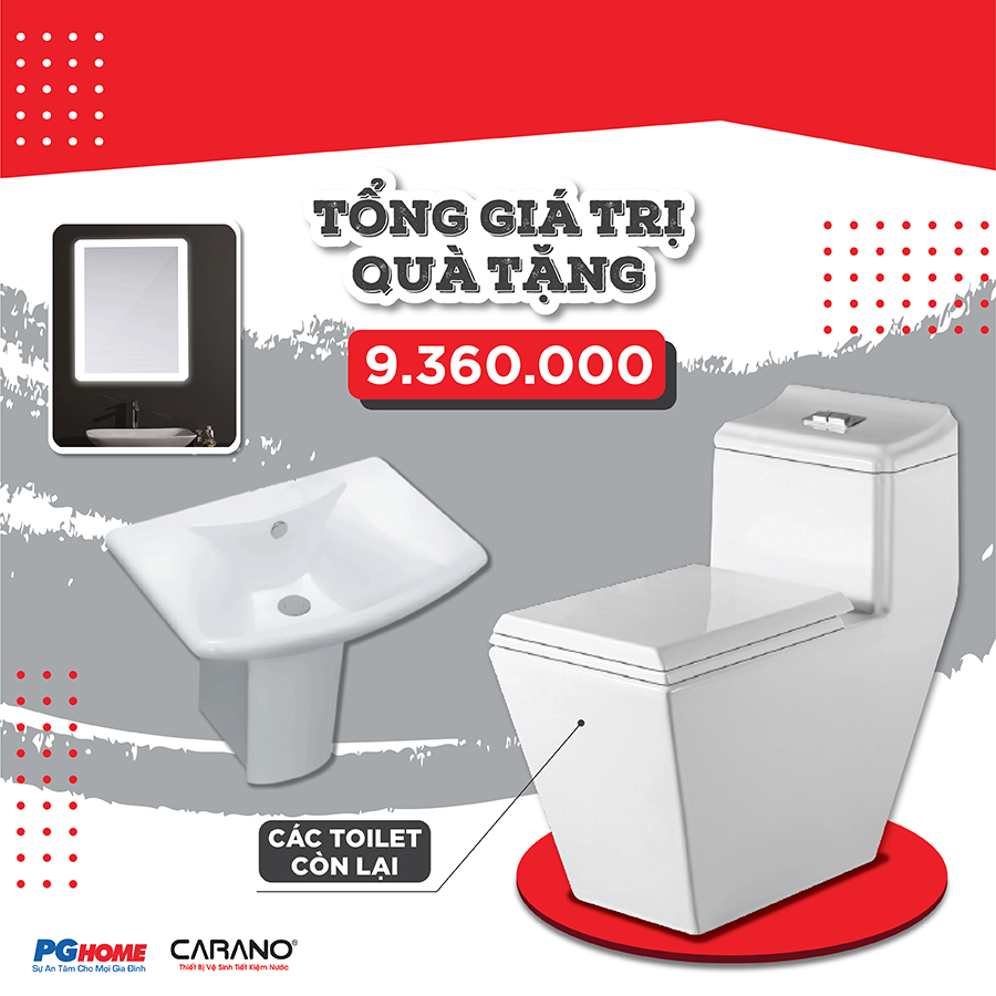 MUA TOILET 1 KHỐI CARANO TẶNG NGAY LAVABO VÀ GƯƠNG ĐÈN LED
