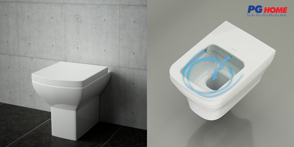 Với thiết kế hiện đại đem lại cho bàn cầu kiểu dáng đẹp và hạn chế tối đa vi khuẩn và chất bẩn. Kỹ thuật tiên tiến này của thiết bị vệ sinh tại PGHOME thật sự đã tạo điều kiện dễ dàng nhất cho bạn trong việc vệ sinh đồng thời giảm thiểu sử dụng hóa chất cọ rửa gây tổn hại đến môi trường.