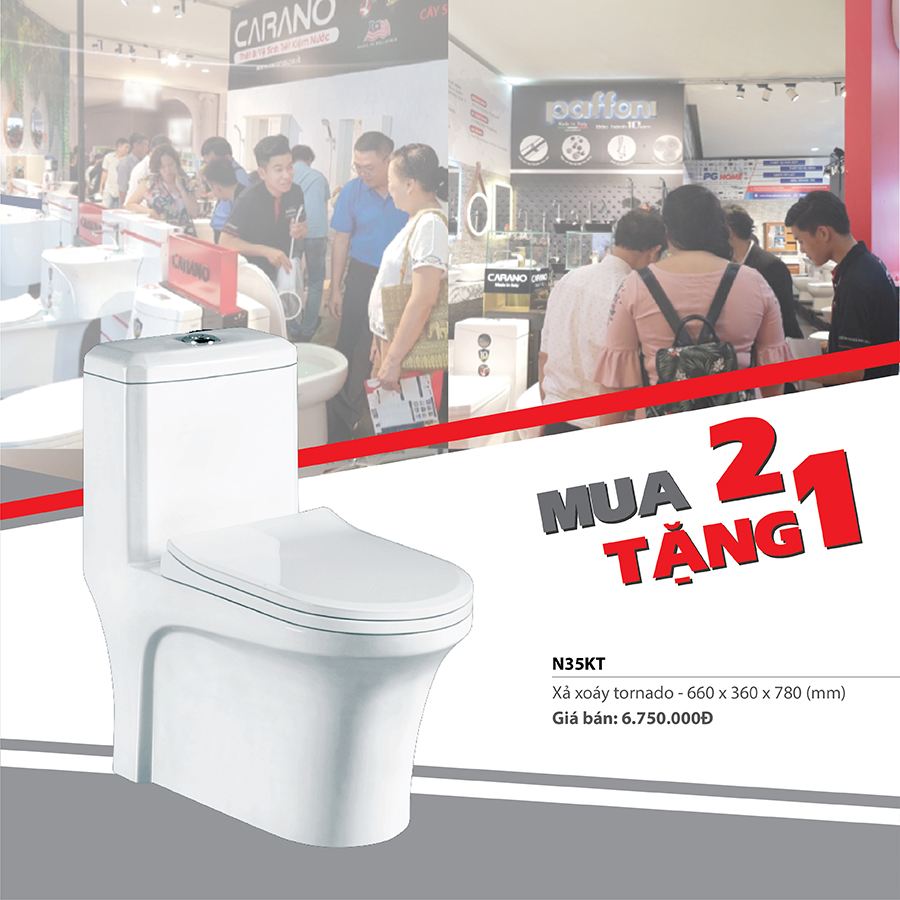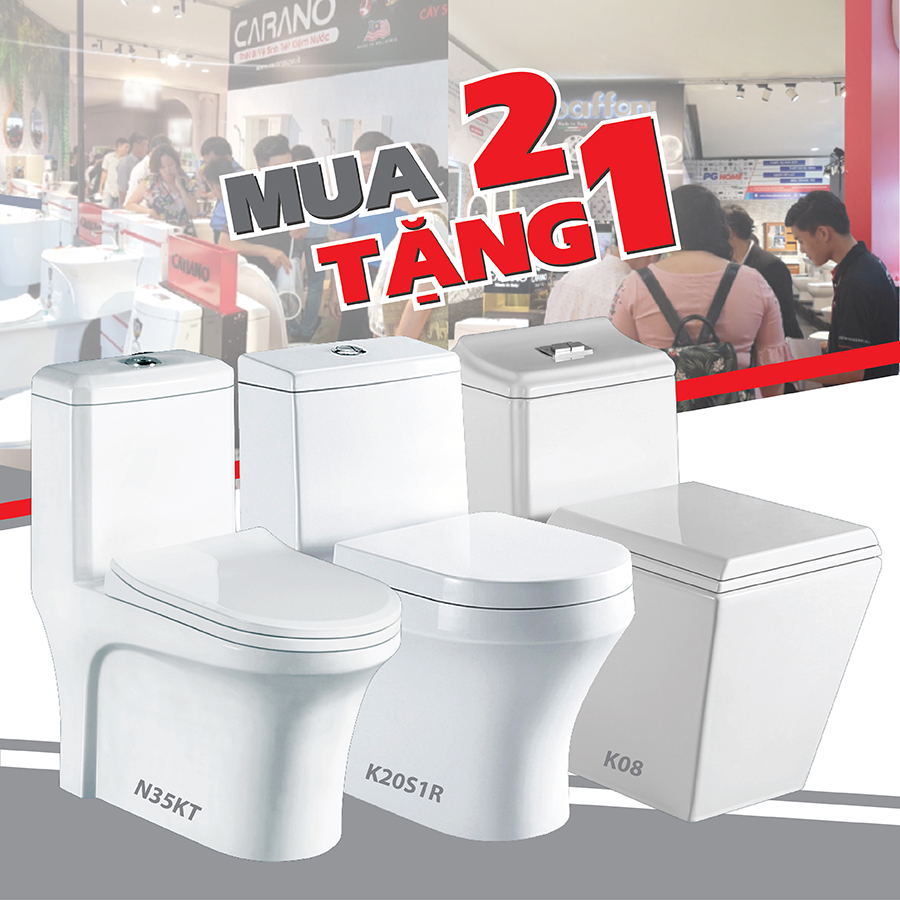 - MUA 2 TẶNG 1: Khi mua 2 toilet CARANO và Nouvo, tặng ngay 1 toilet