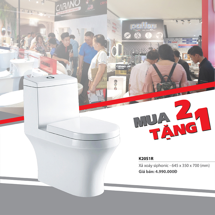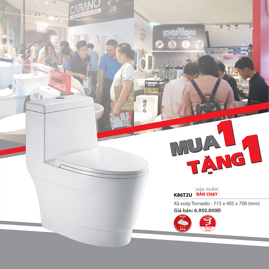 - MUA 1 TẶNG 1: Khi mua 01 toilet CARANO nhận ngay quà tặng là 01 toilet cùng loại.