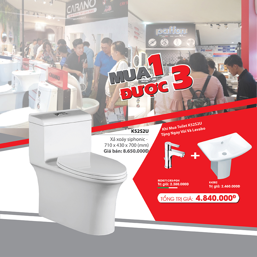 - MUA 1 ĐƯỢC 3: Khi mua toilet K85S1S (giá 8.350.000) tặng ngay 1 Lavabo K43B2 (giá 2.460.000) và Vòi RED071CR3 - PGH (giá 2.380.000)