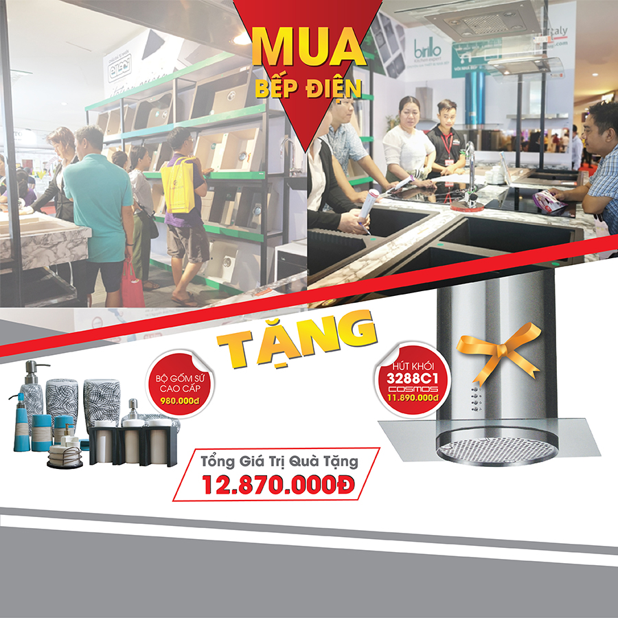 - MUA BẾP ĐIỆN NHẬN NGAY MÁY HÚT KHÓI 3288C1 COSMOS (trị giá 11.890.000) VÀ BỘ GỐM SỨ CAO CẤP (trị giá 980.000)
