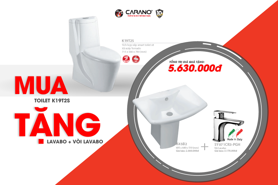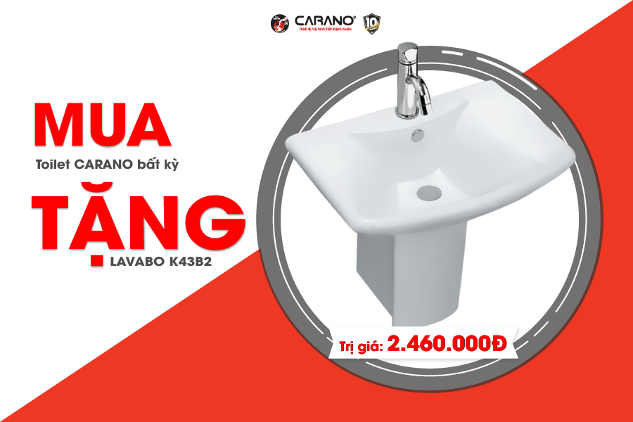 MUA TOILET CARANO BẤT KỲ TẶNG LAVABO K43B2 TRỊ GIÁ 2.460.0000