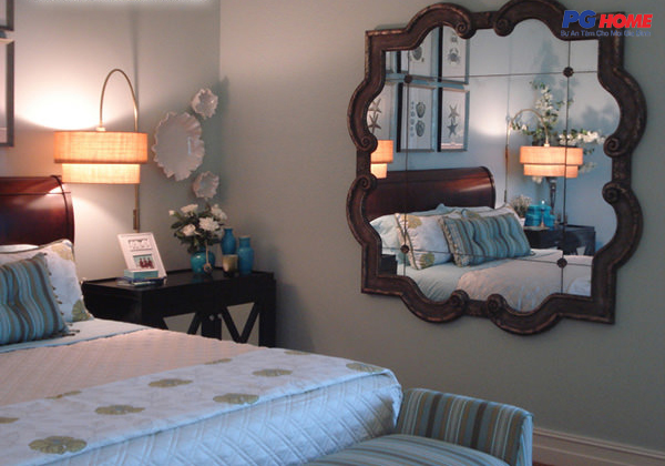 Khi vừa mới thức dậy, con người chúng ta thường đang trong trạng thái mơ hồ, nên nếu đặt gương đối diện giường ngủ, sẽ rất dễ bị giật mình bởi bóng mình trong gương. Đồng thời người ta tin rằng, việc đặt gương đối diện giường ngủ sẽ ‘hút’hết may mắn của chủ nhà.