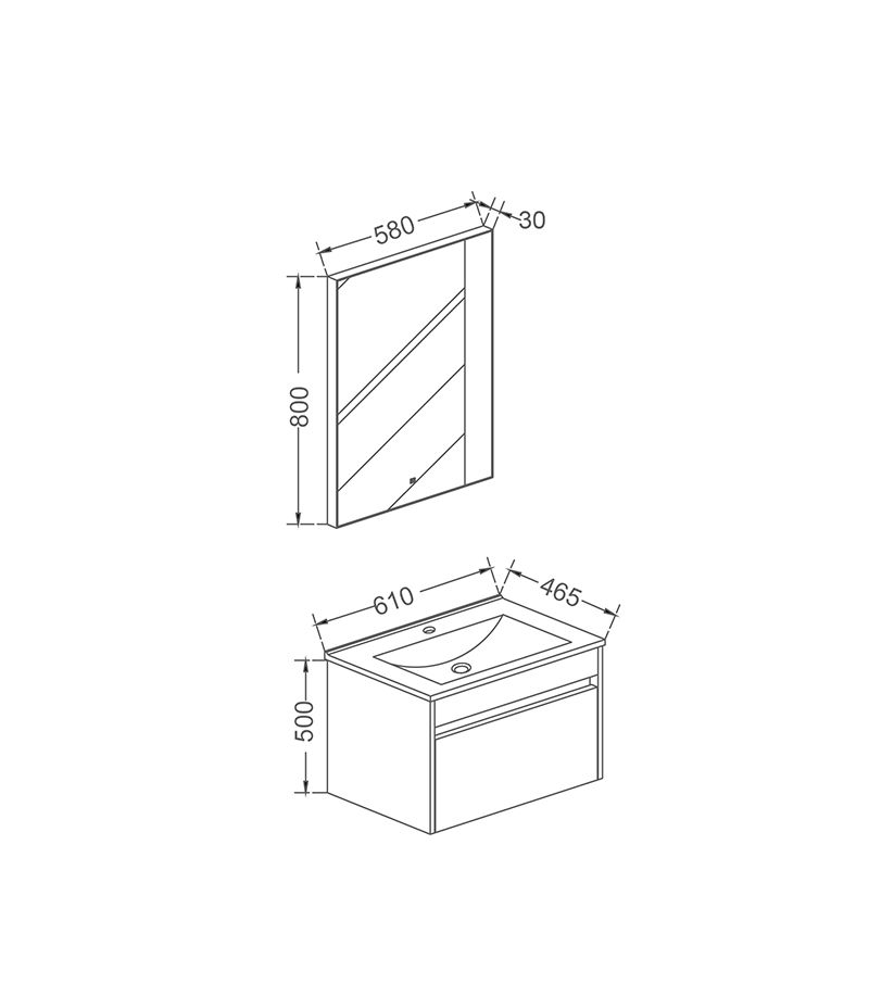 Mặt đá : 1000x550x20 mm Gương 1: 600x30x1060mm Gương 2: 400x300x1720mm Tủ lavabo:900x545x500mm Tủ toilet: 700x200x800mm |